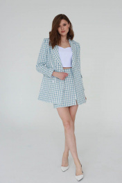 Костюм двойка:твидовый жакет голубая клетка+юбка.