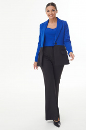 Костюм тройка (жакет двухцветный васильковый в сочетании с синим топом и черными брюками)