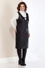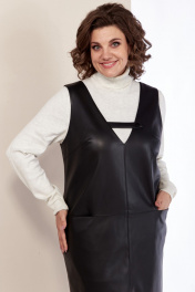 Черный сарафан из экокожи с карманами и молнией AVA fashion М-080 черный - фото 10