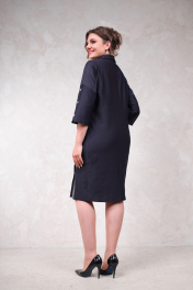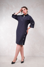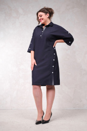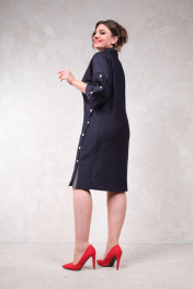 Платье прямого силуэта по колено, с отложным воротником. Застежка на кнопках на горловине, рукавах и боковом разрезе.