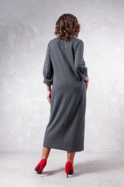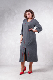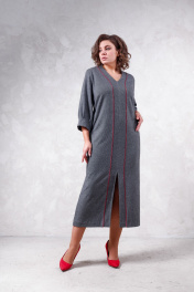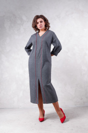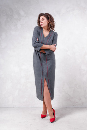 Платье женское из трикотажного полотна, длина миди, свободного силуэта. Рукав 7/8, по переду разрезное с отделкой и разрезом.
