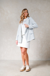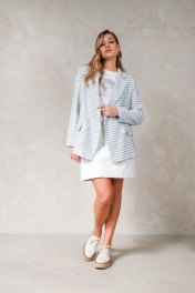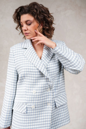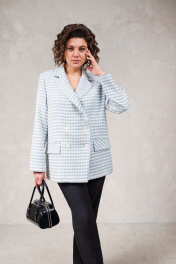 Классический двубортный жакет в стиле "леди-лайк" из твида "пье де пуль". Жакет двубортный на два ряда петель и пуговиц. Воротник отложной с лацканами. Впереди выполнены прорезные карманы "в рамку" с клапанами. Рукава двухшорвые, длнные. Жакет длиной до середины бедра, прекрасно сочетается с юбкой "карандаш", как мини, так и миди.