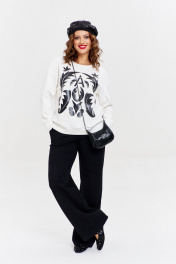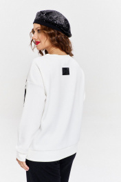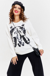 Белый свободный джемпер из трикотажа с авторским принтом AVE RARA 2207 экрю