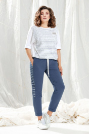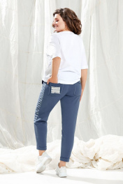 Стильные и комфортные джоггеры из облегченного футера, с принтованными вставками по бокам, эффектно корректирующими фигуру, с четырьмя функциональными карманами и поясом на резинке.