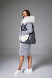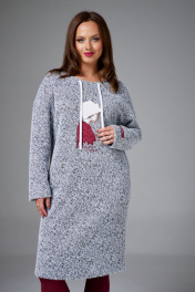 Платье из плотного теплого трикотажного полотна "альпака", прямого силуэта, длиной за колено и круглой горловиной с притачной бейкой. Рукав длинный, линия плеча спущена. В боковых швах удобные карманы. На переде изделия авторская вышивка.