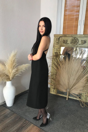 Круглогодичное черное платье миди с открытой спинкой AVEEVA 5134