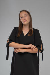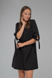 Свободное платье-трапеция рукав 3/4 на завязках AVEEVA 5145 черный