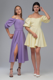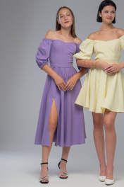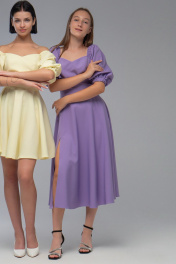 Нарядное платье с двойным лифом и рукавами буфами AVEEVA 5294.1 лаванда