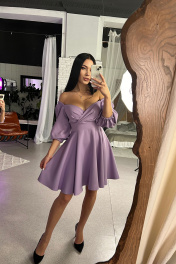 Удобное и хорошее по посадке платье. Резинки на окате рукава позволяют носить платье как с открытыми, так и с закрытыми плечами, что в корне меняет образ. Платье миди полуприлегающего силуэта отрезное по линии талии и ниже линии груди. По лифу в области груди выполнена драпировка. Спинка платья с квадратной горловиной и со средним швом, в котором обработана застежка на потайную тесьму-молнию. Рукава втачные в форме широких буф, стянутые внизу на резинку. Юбка полусолнце. Длина платья от линии талии 50 см. Длина рукава 46 см.