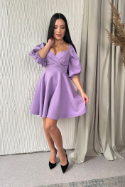 Полу-приталенное платье из текстиля с драпировкой и буфами AVEEVA 5299
