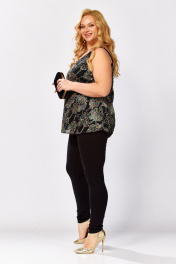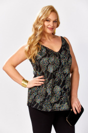 Топ на бретелях полуприлегающего силуэта. Топ состоит из двух топов: верхний выполнен из сетки с вышивкой с пайетками, нижний из однотонной вискозы(штапель). Перед покроен по косой. Бретели регулируются. Каждый из топов можно носить по отдельности и комбинировать с другими предметами гардероба. Длина по боковому-45см.Параметры модели: обхват груди-108см, обхват бедер-114см, размер изделия на модели 54.