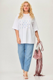 Белая футболка со спущенным рукавом и пайетками Avenue 0314-2 белый
