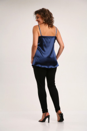Топ на бретелях полуприлегающего силуэта. Перед покроен по косой. Бретели регулируются. Длина по боковому-47,5см. Параметры модели: обхват груди-98см, обхват бедер-110см, размер топа на модели 50.