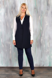 Деловой удлиненный синий жилет с фигурной линией борта Avila 0652 синий