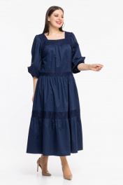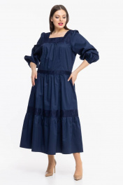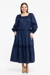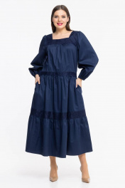 Платье свободного силуэта из хлопка с объемными рукавами Avila 0855 синий
