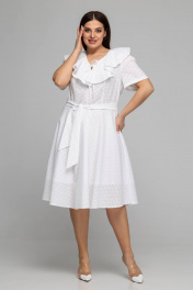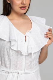 Платье с поясом из 100% хлопка отличный вариант для любого случая. Модель с коротким рукавом, V-вырез, по горловине волан на завязке, по спинке потайная застежка-молния