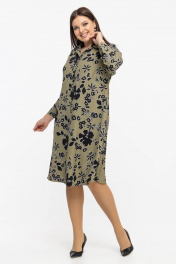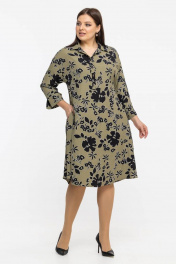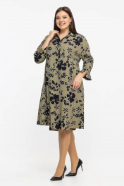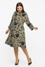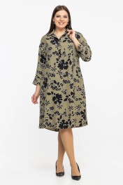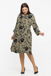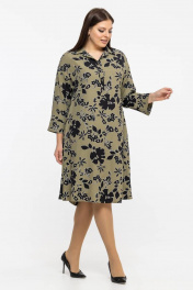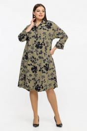А-силуэтное платье из вискозы с рубашечной застежкой Avila 0916 оливковый