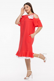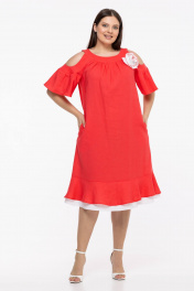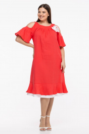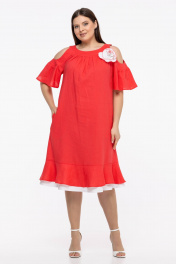 Льняное платье бохо с пышными рукавами и воланом Avila 0930 розово-коралловый
