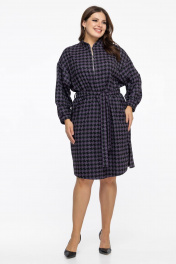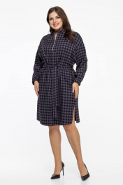 Фиолетовое платье с поясом и длинными рукавами на каждый день Avila 0954 баклажановый