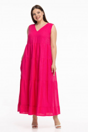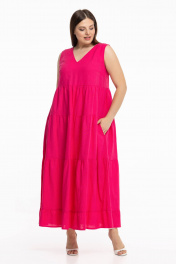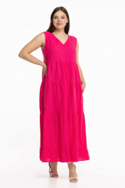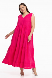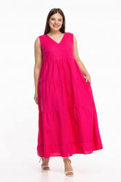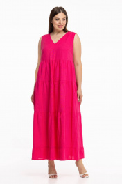 Льняной сарафан с воланами и длиной в пол Avila 0959 малиновый