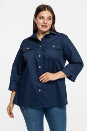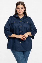 Синяя хлопковая рубашка прямого кроя на пуговицах Avila 0991 темно-синий