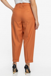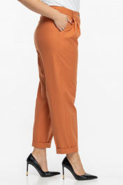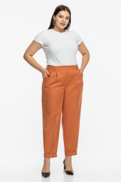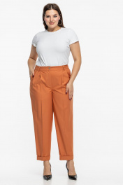 Брюки-бананы легка зауженные к низу, имеют среднюю посадку и идеально садятся по фигуре, подчеркивая ее достоинства и скрывая недостатки. При пошиве брюк использовалась легкая, но плотная и прочная ткань. Такая ткань очень приятная на ощупь, не меняет цвет, не вытягивается на коленях, не скатывается, хорошо сохраняет форму.