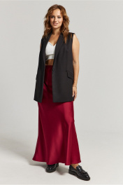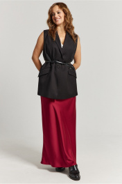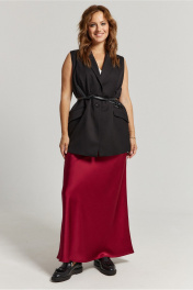 Юбка А-образного силуэта, свободная к низу изделия, выполнена из струящегося полотна глубокого красного цвета. Юбка на обтачке, застежка потайная молния сбоку изделия. Отсутствие лишних деталей позволяет легко сочетать юбку с совершенно разными предметами гардероба, создавая стильные и утонченные образы.
