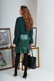 Стильный женский комплект, состоящий из прямой шифоновой блузы и прямой юбки выполненной из качественного кож зама, прекрасно дополняющих друг друга позволит Вам всегда оставаться в тренде. Рукава втачные, по низу собраны на манжету с двойным воланом. Юбка слегка расширена, выполнена на притачном поясе с застежкой типа «гульфик». По низу юбки идет притачная деталь, на которой имеются частично застроченные складки. От бокового шва до пояса в подрезе расположены удобные карманы. Этот наряд позволяет создавать привлекательные луки в каждом отдельном случае. Длина блузы 57 см Длина рукава 62 см Длина юбки 52 см