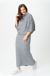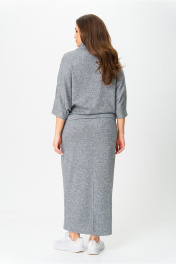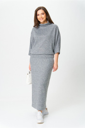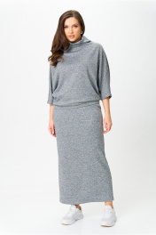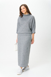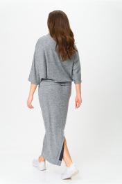 Костюм от бренда «AXXA», состоящий из блузы со свободным спущенным плечом, рукавом типа «летучая мышь» и цельнокроеным воротником стойкой и стильной юбкой с высокой талией, поясом на широкой резинке. Спинка юбки со средним швом. Элегантный высокий разрез усиливает эффект стройности и создает комфорт при движении. Костюм выполнен из качественной трикотажной ткани с легким серебристым мерцанием. Свободная блуза и длинная юбка макси подчеркивают женственность и грацию, делая этот костюм фаворитом в Вашем гардеробе. Идеальный выбор для стильной женщины, как на каждый день, так и для светских мероприятий. _____________________________ Длина блузы 62 см Длина юбки с учетом высоты пояса 92 см