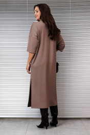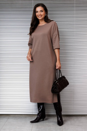 Платье женское трикотажное, свободное "оверсайз", со спущенной проймой и 3/4 рукавом, вырез горловины полукруглый с планкой, в боковых швах-карманы и разрез слева.