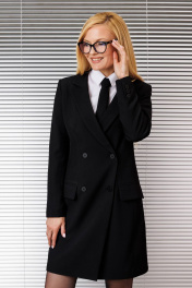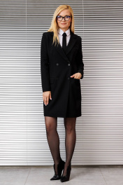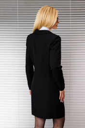 Платье в стиле классического жакета, 2-бортное с воротником,прилегающего силуэта, до колена, по переду карманы с клапанами, рукав втачной со шлицей по низу рукава. Изделие на подкладке.