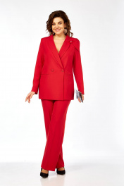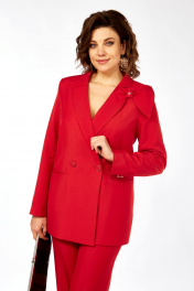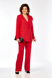 Комплект женский брючный из костюмной ткани с эластаном. Жакет полуприлегающего силуэта, 2-бортный с отложным ассеметричнымворотником, по переду -карманы,рукав втачной со шлицей и пуговицами. Изделие на подкладке. Брюки прямые свободные, с боковыми карманами, на поясе с эластичной тесьмой.