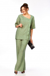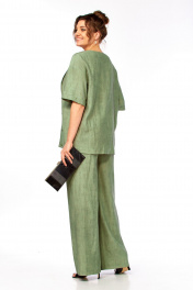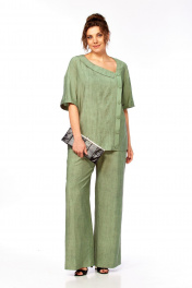 Комплект женский брючный, состоящий из блузы и брюк.Блуза свободного покроя до уровня бёдер с рукавом на спущенной пройме, рукав до локтя с отложной манжетой по низу. Вырез горловины ассиметричный V- образный, с воротничком, слева по переду планка с пуговицами от горловины до низа изделия, спинка цельная прямая. Брюки свободные, широкие на поясе с эластичной тесьмой, с боковыми карманами. ОГ (50):59см (52):61см (54):63см (56):65см (58):67см (60):69см ОБ блуза(50):58см брюки:58см блуза(52):60см брюки:60см блуза(54):62см брюки:62см блуза(56):64см брюки:64см блуза(58):66см брюки:66см блуза(60):68см брюки:68см ОТ (50):42см (52):44см (54):46см (56):48см (58):50см (60):52см Длина блуза- 65-66см, брюки-103см