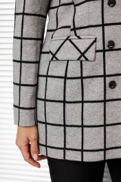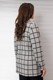 Жакет женский полуприлегающего силуэта, с отложным воротником и лацканами, с двубортной застежкой на петли и пуговицы, рукав втачной 2-шовный, по переду вытачки, рельефные швы, прорезные карманы, по спинке средний шов, изделие на подкладке.