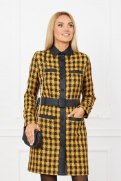 Платье из ткани с кожзаменителем и накладными карманами Azzara 865Г