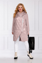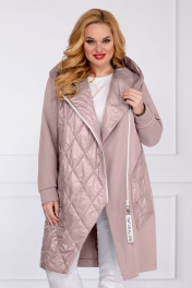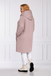 Кардиган женский прямого силуэта выполнен из двух видов ткани. Перед ассиметричен. Правая полочка,капюшон, и карманы выполнены из курточной ткани, простёганной тонким синтепоном. Левая полочка, рукава и спинка выполнены из трикотажного полотна "трёхнитка". Застёжка ассиметричная на тесьму "молния" с декоративной подвеской. Внутри потайная кнопка. На полочках обработаны накладные карманы. Вход в карман обработан притачной планкой из трикотажного полотна. На левом кармане настрочена декоративная нашивка. Фурнитура может меняться. Дл. кардигана в 52,54,56 р. - 100 см Дл. рукава в 52,54,56 р. - 60 см Дл. кардигана в 58,60,62 р. - 100 см Дл. рукава в 58, 60,62 р. - 62 см.