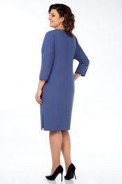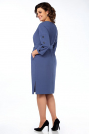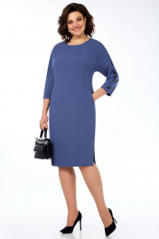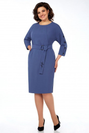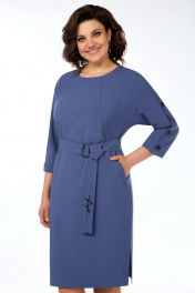 Платье женское полуприлегающего силуэта выполнено из плательно-костюмной ткани.Перед с рельефами от горловины до бокового шва,в швах карманы с листочками.Плечи спущённые.Рукава длинной 3/4 с декоративными пуговицами (имитация затежки). Спинка со средним швом и плечевыми вытачками.По низу левого бокового шва разрез.Платье укомплектовано поясом с вышивкой.