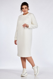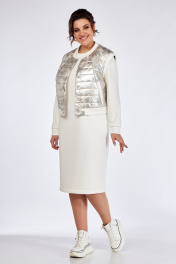Комплект жилета и платья из двух тканей с вышивкой БагираАнТа 933 молочный