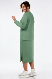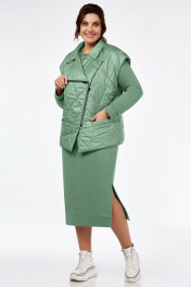 Три предмета комплект: джемпер юбка жилет из трикотажа и плащёвой ткани БагираАнТа 934 зеленый