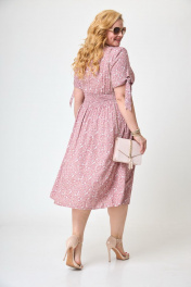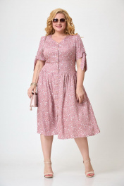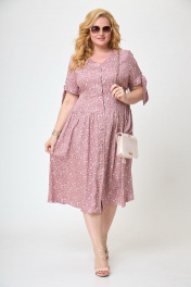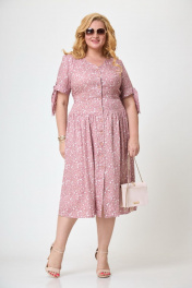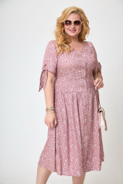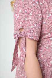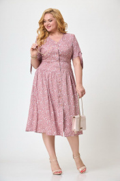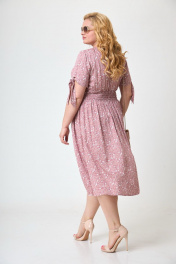 Платье женское, приталенного силуэта с расширением к низу. Лиф платья с нагрудными вытачками выходящими из плечевого шва. На изделии имеется подрезной широкий пояс с настрочной резинкой-моделькой-моделькой по спинке. Юбка платья со сборкой. Застежка изделия-центральная на петли и пуговицы. Горловина V-образной формы. Рукав втачной, одношовный с манжетой, переходящей в завязки.