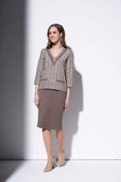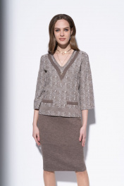 Коричневый джемпер с карманами и брошью, в стиле casual Barbara Geratti С4066BG кора/молочный