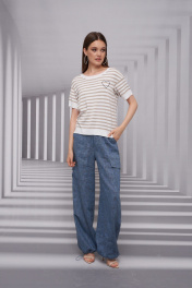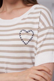 Джемпер женский, свободного силуэта. Горловина круглая. Рукав короткий, со спущенной линией плеча. На переде изделия вышито сердце декоративным стежком и бусинами