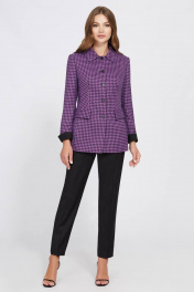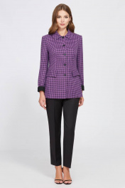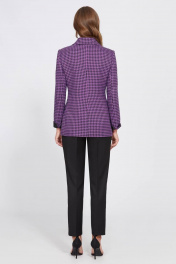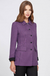 Лаконичный однобортный жакет с центральной застежкой на петли-пуговицы выполнен из приятной на ощупь ткани с добавлением вискозы и ярким контрастным узором «гусиная лапка». Материал отличается мягкостью, прочностью и не деформируется. Модель полуприлегающего силуэта дополнена отложным воротником, вертикальными карманами в швах и декоративными клапанами. Рукава втачные двухшовные, локтевые швы которых заканчиваются небольшими разрезами. Чтобы создать ультраженственный индивидуальный образ, низ рукавов можно отвернуть – получить контрастные манжеты. На подкладке. Модель прекрасно комбинируется с брюками из нашей колллекции.