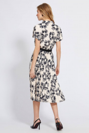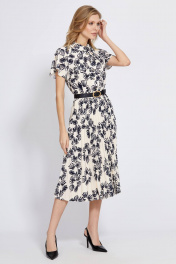 Это платье-рубашка со стильным и женственным цветочным дизайном – великолепный выбор для дневного мероприятия. Модель выполнена из мягкой приятной немнущейся ткани. Платье-миди Х-образного силуэта, отрезное по линии талии и собранное на эластичную тесьму, с рубашечным воротником и застёжкой по переду на петли-пуговицы. Оригинальность модели придают: рукава-бабочки, украшенные патами с отделочными пуговицами; плиссированная юбка, добавляющая изделию лёгкости и пояс-ремень с пряжкой, позволяющий создать дополнительный акцент на талии.