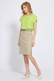 Элегантная юбка-карандаш правильной длины удачно впишется в офисный гардероб. Для пошива модели использовали мягкую ткань с добавлением вискозы с интересным сочетанием мелкой «гусиной лапки» с яркой клеткой. Юбка с интересно й задумкой игры клетки на поясе и рамках карманов. Спереди с карманами-обманками с аккуратными клапанами, в среднем шве спинки обработана застёжка на потайную молнию, левый боковой шов заканчивается разрезом. На подкладке. Завершает модель пояс-ремень с пряжкой.