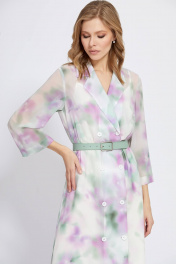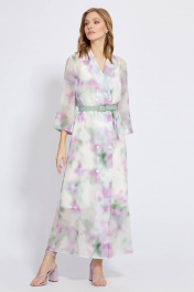 Эффектное, длинное, двубортное платье, выполненное из мягкого шифона с эксклюзивным принтом. Слегка расклешённая модель имеет отложной воротник с лацканами, застёжку на пуговицы и укороченные широкие, втачные рукава. Прямой крой можно регулировать по талии благодаря ремню, придавая модели современный вид. Платье комплектуется с нижним платьем из комфортной 100% вискозной ткани.