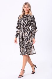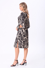 Данная модель платья прямого силуэта длины миди - эталон женственного образа. Правильное настроение задали при помощи абстрактного цветочного принта и достойного внимания кроя рукавов, частично приоткрывающих руки и задающих романтическое настроение, и манжет с красивыми ювелирными пуговицами. Динамичность модели придают разрезы в боковых швах. Для удобства в носке по спинке обработана застёжка-капля на петлю-пуговицу. Сформировать приталенный силуэт помогает пояс-ремень с пряжкой. Платье выполнили из приятной вискозной ткани с интересным сочетанием матовой основы и ненавязчивых атласных крапинок. Оно идеально подходящей для торжественных и праздничных мероприятий и вечерних выходов.