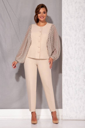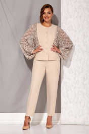 Брюки, жакет Beautiful&Free 3091 бежевый+горох
