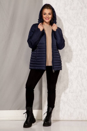 Куртка женская, демисезонная, из гладкокрашеной полиэфирной ткани, с наполнителем холлофайбер, рассчитана на температуру от 0 до -10 (холодная осень, весна, теплая зима). Изделия из данного материала способны прослужить своему владельцу достаточно длительное время. В особенно холодные месяцы такой наполнитель будет отлично удерживать тепло. Изделие имеет частично гладкую, частично стеганную основу. Куртка прямого, свободного силуэта, базового классического кроя, длиной чуть ниже подъягодичной складки (в зависимость от роста потребителя). Передняя часть куртки с двумя нагрудными выточками, горизонтальным порезом в виде складки на уровне чуть ниже линии груди и двумя вертикальными, функциональными карманами на молнии. Застежка встык на разъемную тесьму «молния» и притачной ветрозащитной планкой внутри. Застежка имеет длину от линии низа до верхнего края капюшона. Спинка цельнокроеная. Рукав двухшовный, втачной, длинный. По низу изделия, во внутренней стороне, предусмотрена дополнительная стяжка на шнур, концы которого выведены через люверсы в боковых швах. Капюшон с отрезной центральной частью, притачной по линии горловины, со шнуром по переднему краю, концы которого выведены через люверсы, которые фиксируют степень прилегания к голове. Подкладка гладкая, однотонная, имеет дополнительный внутренний карман. Длина куртки (по среднему шву спинки) = 69см. (+1см.) Длина рукава = 66см. (+1см.)