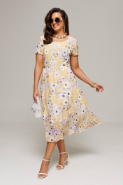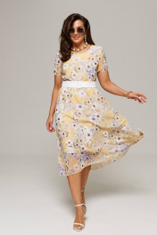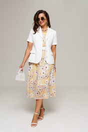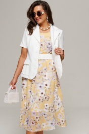 Нарядный летний костюм жакет и платье из шифона Beautiful&Free 6100 молочный+желтый - фото 7